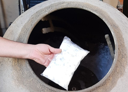 Aplicação do aditivo embalado no plástico hidrossolúvel